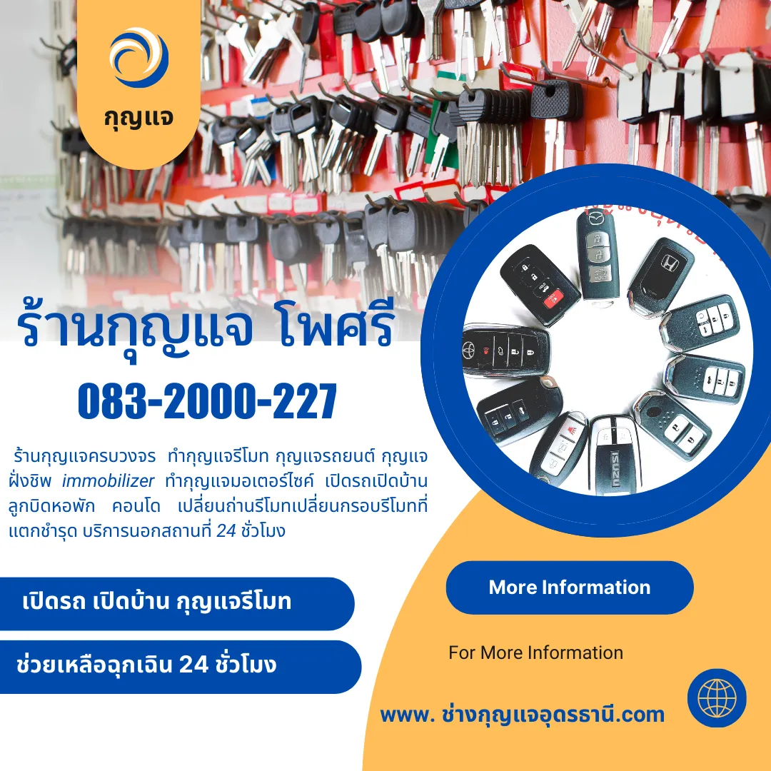 ช่างกุญแจ24ชั่วโมง บริการนอกสถานที่ เปิดบ้าน เปิดรถ รับทำ กุญแจรีโมทรถยนต์ กุญแจฝั่งชิพ กุญแจมอเตอร์ไซค์ หาย ทำเพิ่ม ปลดล็อคกุญแจรถ